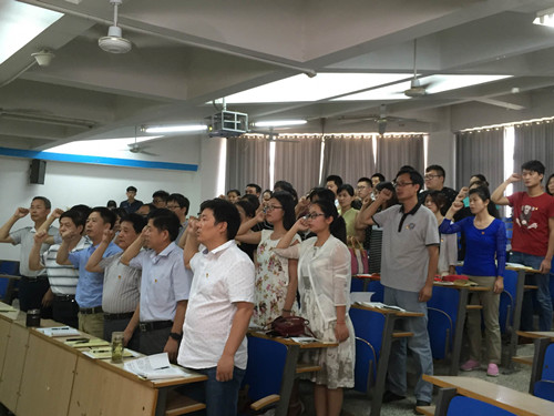 6月16日下午,传媒技术学院党总支按照学校“两学一做”学习教育活动第二专题学习内容的安排,组织学院全体教职工党员和学生党员在11#A404开展“重温誓词 聆听党课” 学习教育活动,并观看了历史文献纪录片《信仰》。