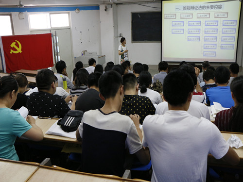 活动伊始,全体党员在研究生殷悦的带领下重温入党誓词,党员们面向鲜红的党旗高举右手庄严宣誓共同发出“……为共产主义奋斗终身,随时准备为党和人民牺牲一切,永不叛党”的铮铮誓言,声音铿锵有力;随后进行第二项“党课学习”,全体党员员认真听取了马克思主义学院副教授马莉老师的党课。此次党课的学习结合了“两学一做”学习教育活动的内容,把学习党章和践行党章统一起来,有利于全体党员进一步学习领悟党课精神,并付诸于实践,做到真正的知行合一。最后,全体党员共同观看了历史文献纪录片《信仰》。