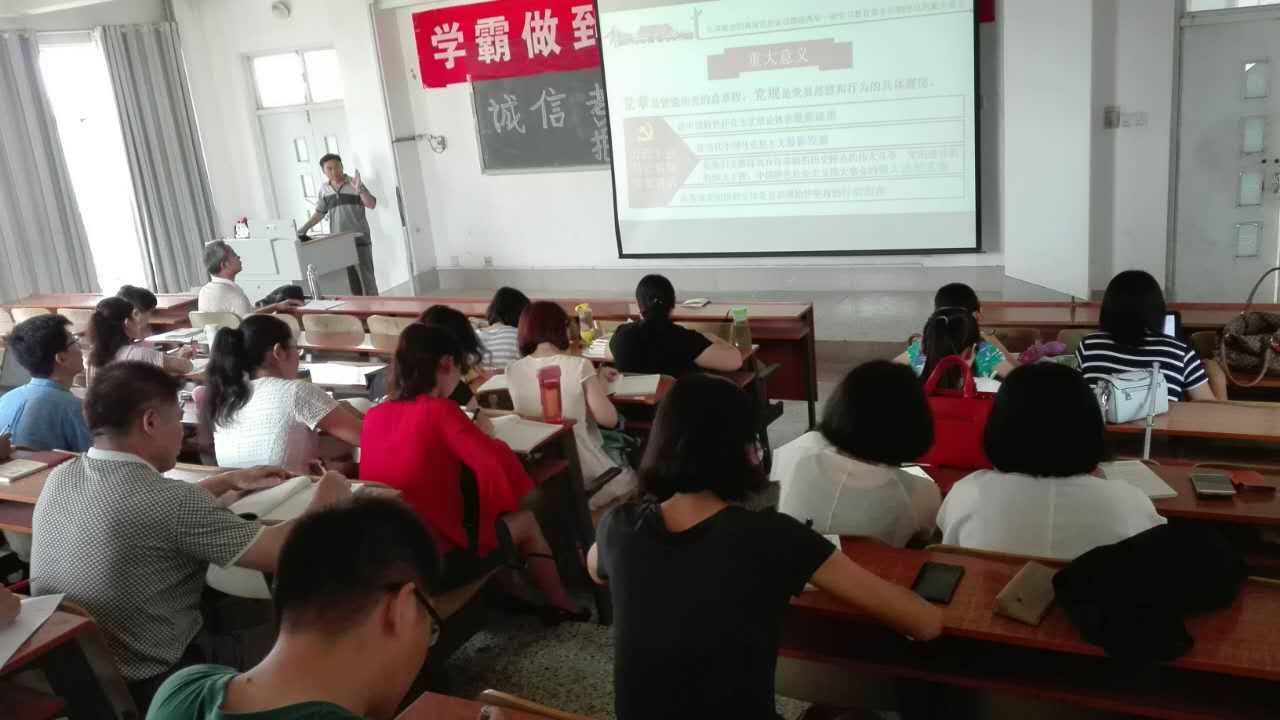 为庆祝中国共产党成立96周年,推进“两学一做”学习教育常态化制度化,7月6日下午,传媒技术学院党总支组织学院全体师生党员在11号教学楼401教室聆听专题党课。