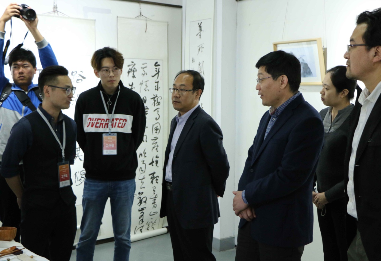 10月18日,由山东省教育厅主办的山东省第五届大学生艺术展演活动艺术作品类、艺术实践工坊类优秀作品展在山东工艺美术学院长清校区开幕。山东省教育厅体卫艺处处长孙乐为、山东工艺美术学院副院长董占军、教育处处长孙磊等领导参加了本次活动的开幕式。来自青岛大学、聊城大学、山东水利职业学院等九所兄弟院校的师生代表,参加了开幕式并参观展览。山东省大学生艺术展演活动每三年举办一次,最终选拔出最优秀的展演展览作品,参加全国大学生艺术展演展览活动。