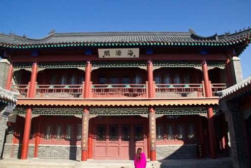 邸衍玲老师带领同学们来到了古楼的楼南大街。楼南大街北起光岳楼、南至南门水桥,有一条长200米,宽18米的街道。楼南大街的中段西侧则为重点文物保护单位——海源阁。海源阁是聊城文化昌盛的标志,它的院落紧靠楼南街南口,坐北朝南。新建的“海源阁图书馆”紧邻海源阁西侧与海源阁珠联璧合相映生辉。