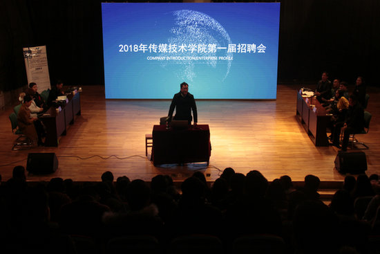 为拓宽毕业生就业渠道,更好地解决大学毕业生就业难问题,缓解当今大学毕业生就业压力。1月4日,传媒技术学院于西校综合实验楼演播厅举办了2018年第一届招聘会。此次招聘会主要面向2014级应届毕业生及其他有意愿的学生,北京宴禧餐饮管理有限公司、杭州惠耳听力技术设备、聊城海德商贸有限公司、山东智慧大海文化产业发展有限公司、千峰集团以及北京之元科技有限公司共六家企业单位参加了此次招聘会。本次会议由分团委书记赵勇老师主持。