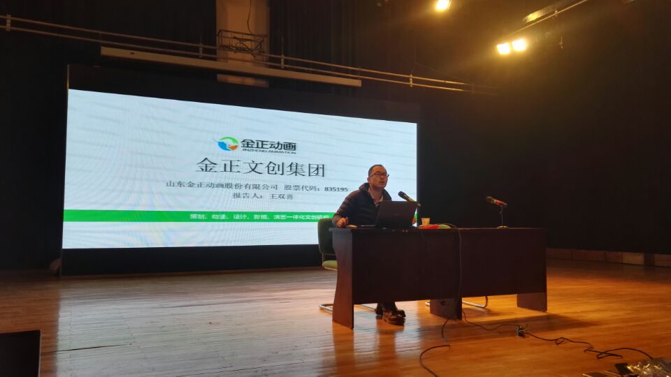上午在综合实验楼大演播厅组织了实习单位宣讲会,由院长助理郭峰主持,山东金正动画股份有限公司副总经理王双喜、汇众益智科技有限公司济南分公司经理范成龙分别就两家公司的发展规模、运营状况、应聘岗位、及职位要求做了详细的解说。会后同学们走上讲台就感兴趣的问题对两家公司进行咨询,并通过面对面建群的方式进一步沟通。