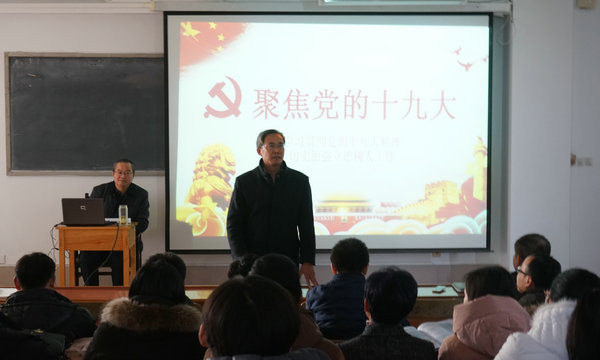 乔丙武从党的十九大的主要特点、主要亮点两个方面详细解读了十九大的深刻内涵,并结合本职工作谈了个人几点思考。他从成果丰硕、主题鲜明、内涵丰富等方面概括十九大主要特点,从进入新时代、确立新指南、实施新战略三个方面阐述十九大主要亮点。最后,他结合学校工作实际提出切实学习宣传贯彻好党的精神、切实加强学院立德树人工作、尤其强调切实做好学院宣传思想与文化建设工作等几点建议。乔部长所作的辅导报告全面系统、脉络清晰、深入浅出、生动形象,对大家理解和把握党的十九大精神的丰富内涵和精神实质,促进学院发展有很强的指导意义。(通讯员 王梦繁 孟欣)