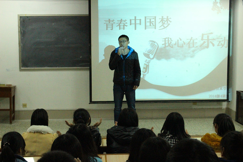 为了传承中华民族优秀传统文化,激发同学们的爱国意识。11月6日晚上,传媒技术学院13级4班在11#A407开展了一场主题为“青春中国梦,我心在乐动”的宣传活动。