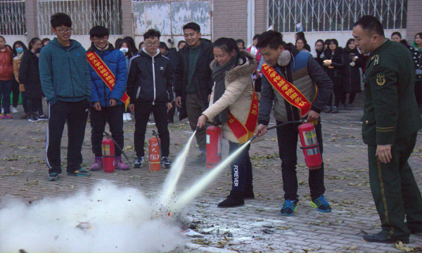 活动伊始,由郑新老师介绍本次活动的举办目的和意义,并请来聊城市消防队王岳科长为同学们宣讲消防安全知识。首先,教员通过PPT为同学们分析典型消防案例,阐述消防安全的重要性,同学们认真聆听讲座内容并对重要内容进行记录。其次,老师简述演练流程并组织女生回到宿舍,准备演练活动。演练前期,活动相关负责人设置好火警铃,提前给参加活动的宿舍各宿舍长开会,将宿舍消防逃生演练的人员、时间、地点以及各宿舍的疏散路线提前发送至各班级,确保活动能够有序进行。其次等到现场准备就绪后,听到预设哨声,同学们开始进行逃生疏散演练。楼梯两边宿舍各成一排,同学们用毛巾捂住口鼻,低下身子,迅速、有序逃离到安全地区。紧接着,负责人进行人员清点,并汇报结果。最后,教员讲解宿舍消防安全知识及注意事项,并演示灭火器的正确使用方法,并邀请多名同学进行练习。